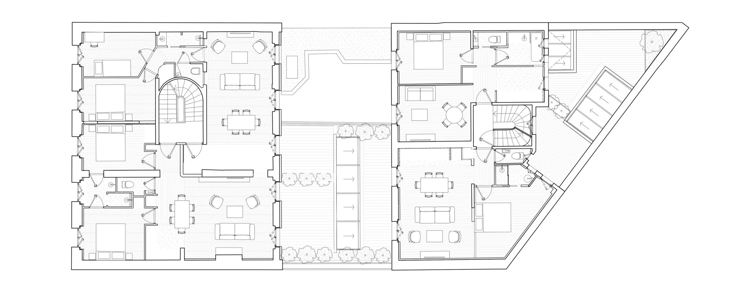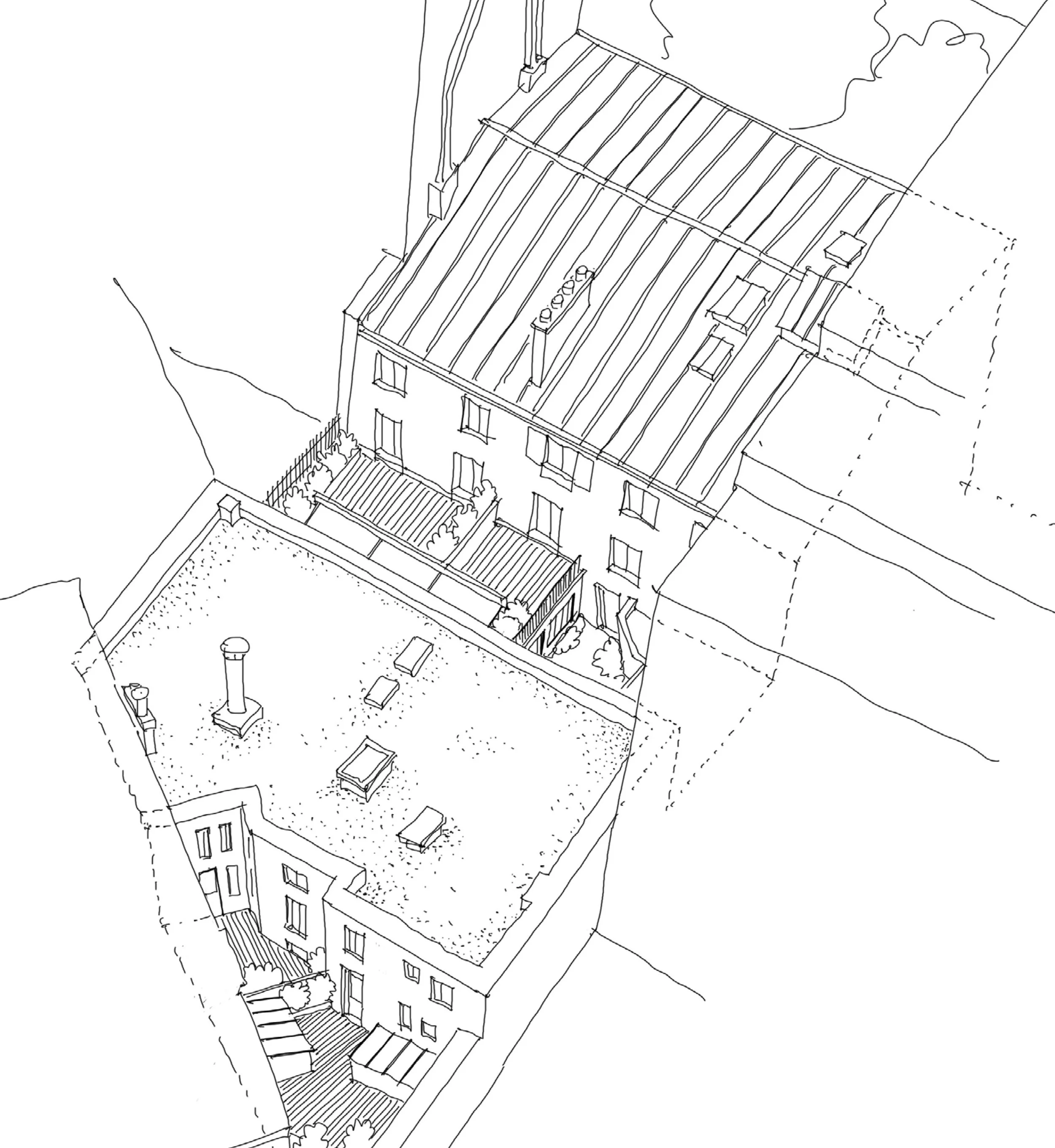 Rénovation lourde d’une copropriété, comprenant 7 logements et un local commercial. Redistribution des appartements, mise en œuvre de parquets massifs réemployés, création de terrasses végétalisées, aménagement des parties communes, assainissement des caves, création de verrières en toitures, réfection complète des toitures et façades.